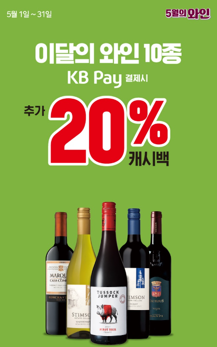 - 이달의 와인 10종 KB Pay 결제시 추가 20% 캐시백